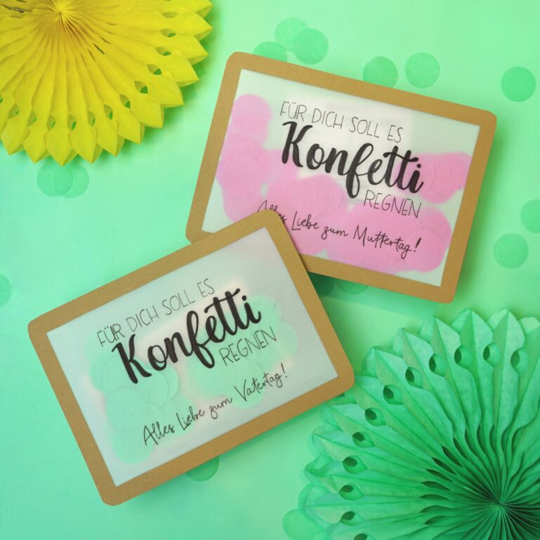 DIY Vatertags- und Muttertagsgeschenk: Konfetti-Karte mit Transparentpapier selber basteln