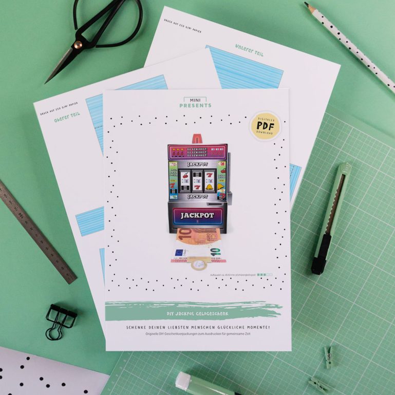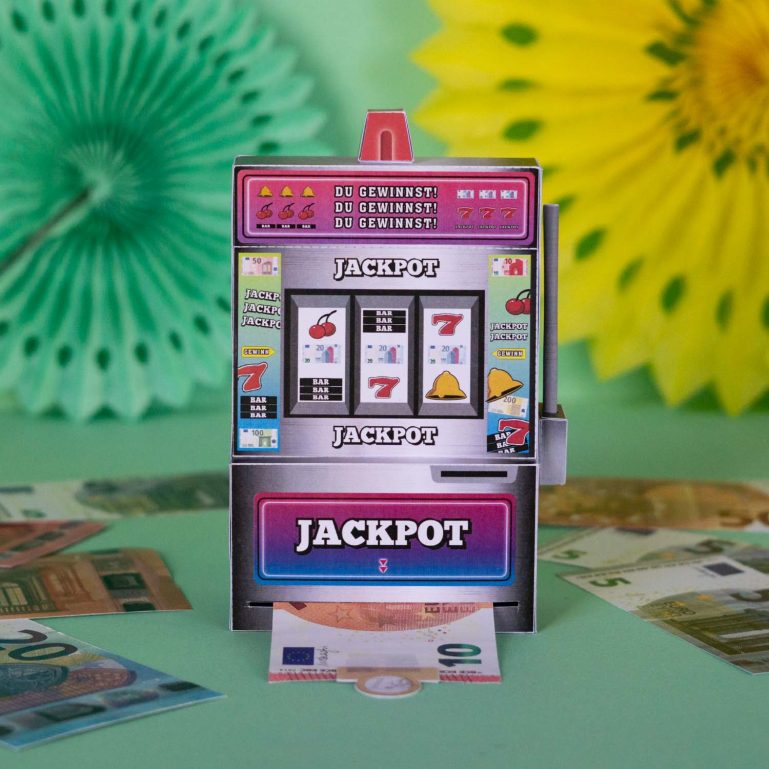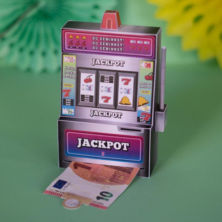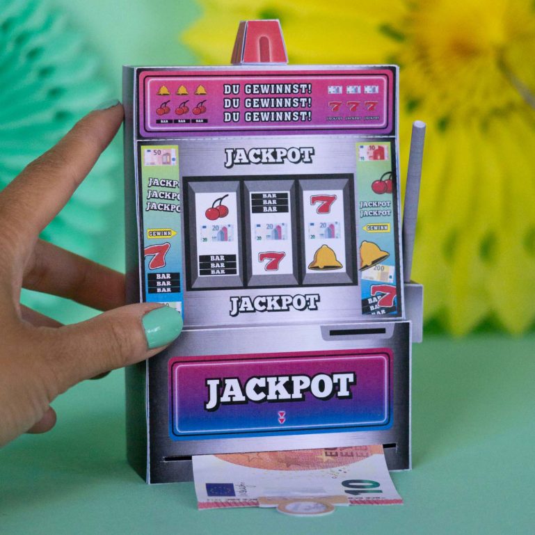 Eine originelle Idee, um Geldgeschenke zu verpacken: Eine von dir selbst gemachte und einzigartige Geschenkbox, aus der man unendlich viel Geld ziehen kann! Meine Vorlage zum Selbermachen ist ein einarmiger Bandit, bei dem man dein Geldgeschenk aus der Geschenkbox herausziehen kann. Je nach dem wie viele Geldscheine zu aneinander klebst, kann man an seinem Geldgeschenk richtig lange ziehen ? Mit so einer kreativen Finanzspritze bist du garantiert der Held oder die Heldin auf jeder Geburtstagsparty ?